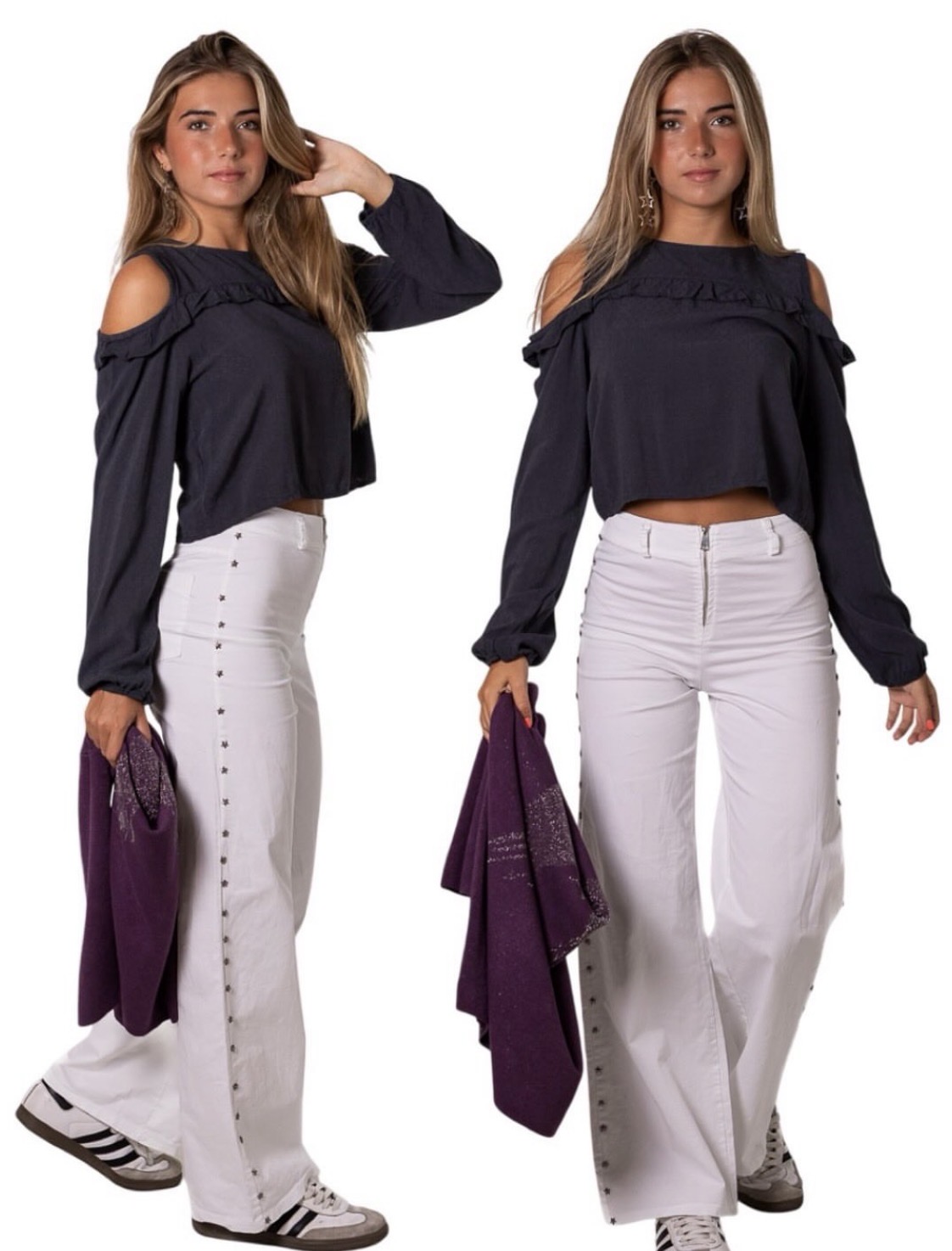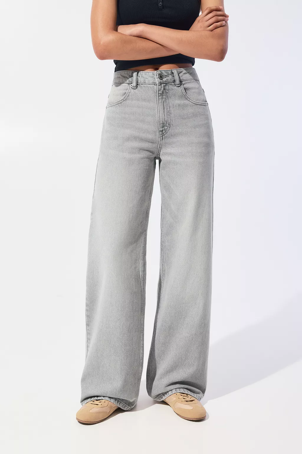 Descubre la combinación perfecta de comodidad y tendencia con nuestros pantalones wide leg de tiro alto. Su corte fluido y holgado realza cualquier silueta, mientras que el tiro alto estiliza tu figura.